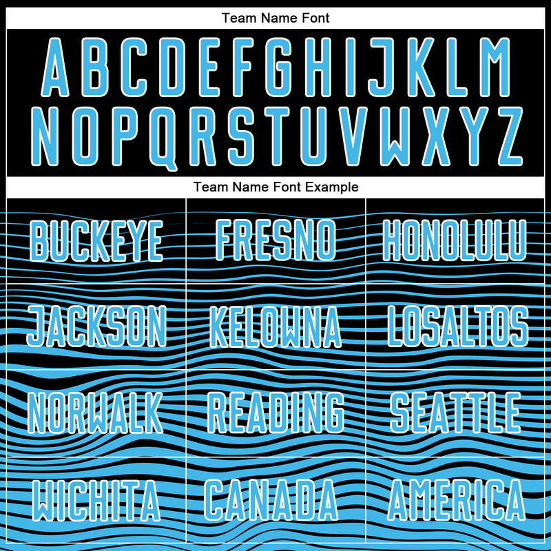 Custom Black Sky Blue-White Gradient Line Sublimation Soccer Uniform Jersey