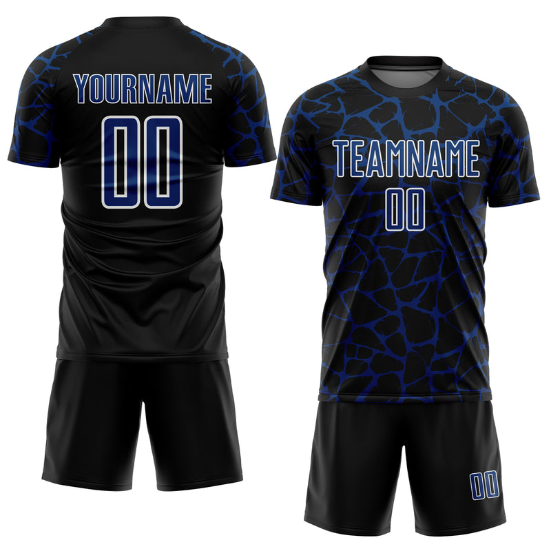 Custom Black US Navy Blue-White Abstract Network Splash Sublimation Soccer Uniform Jersey