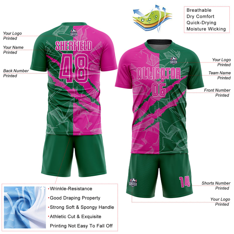 Custom Graffiti Pattern Deep Pink-Kelly Green Scratch Sublimation Soccer Uniform Jersey