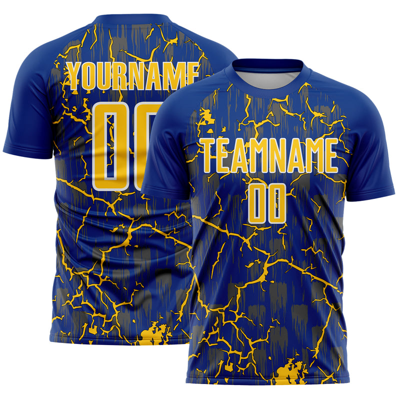 Custom Royal Yellow-White Lightning Sublimation Soccer Uniform Jersey