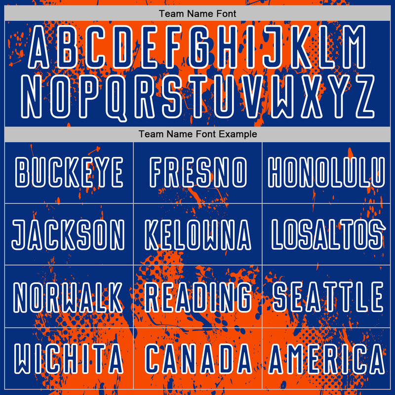 Custom Orange Royal-White Abstract Splatter Grunge Art Sports Sublimation Soccer Uniform Jersey