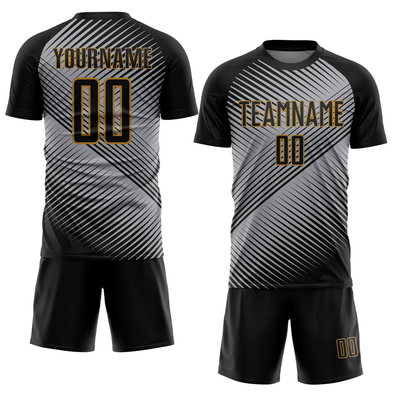 Custom Gray Black-Old Gold Sublimation Soccer Uniform Jersey