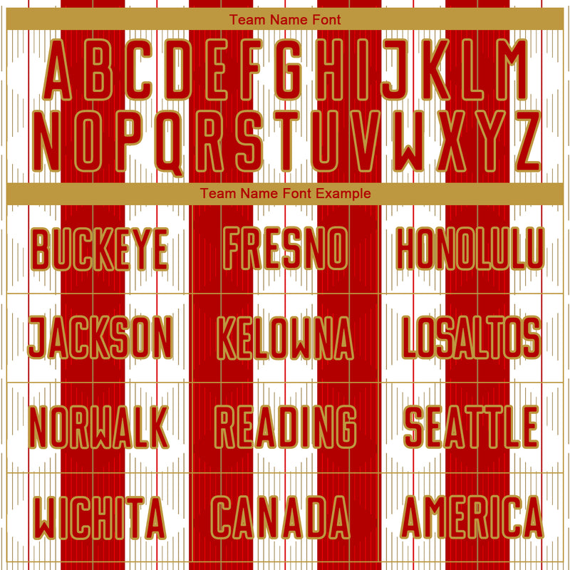 Custom Red Old Gold-White Line Sublimation Soccer Uniform Jersey