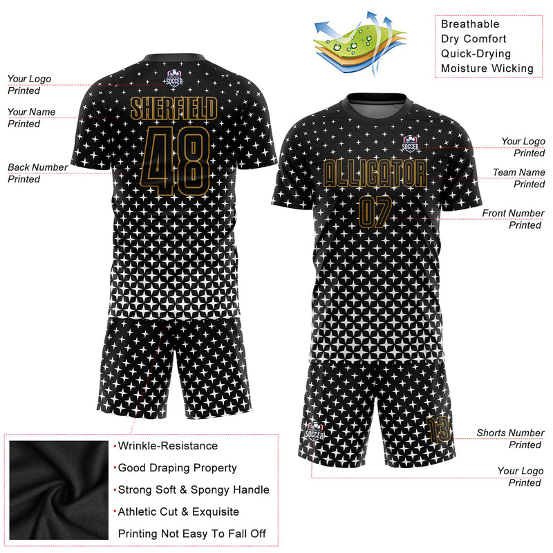 Custom Black Old Gold-White Sublimation Soccer Uniform Jersey