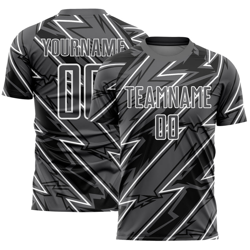 Custom Steel Gray White Lightning Sublimation Soccer Uniform Jersey