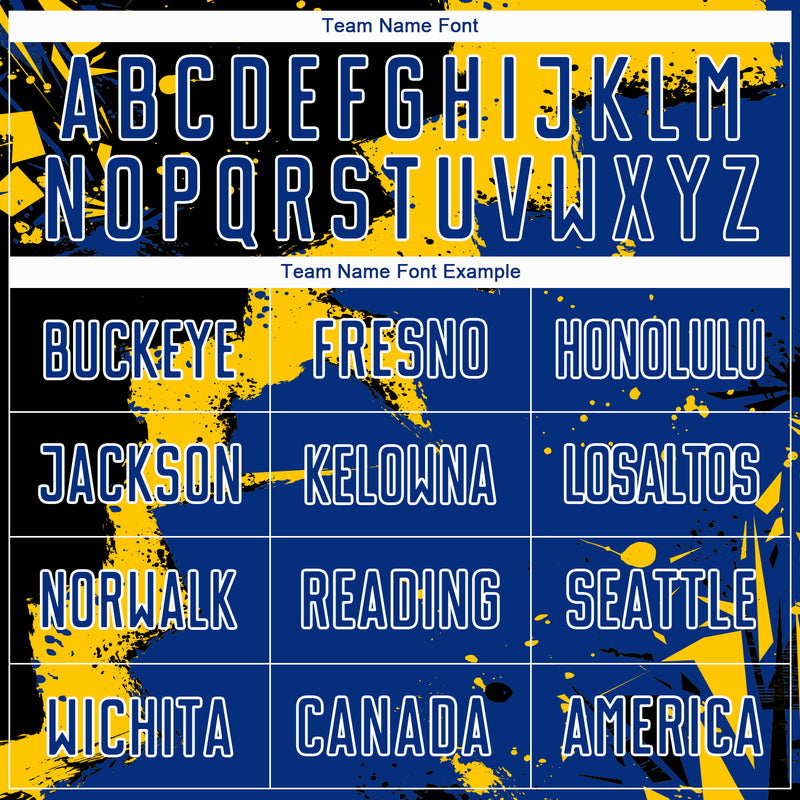 Custom Black Royal-Yellow Spalsh Sublimation Soccer Uniform Jersey