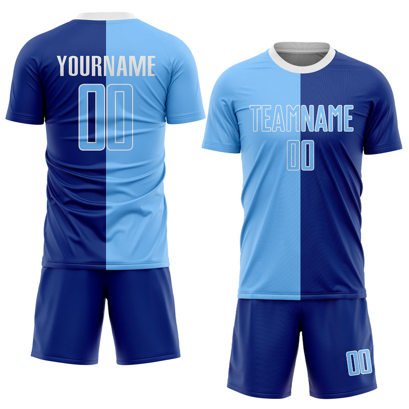 Custom Royal Light Blue-White Sublimation Split Fashion Soccer Uniform Jersey