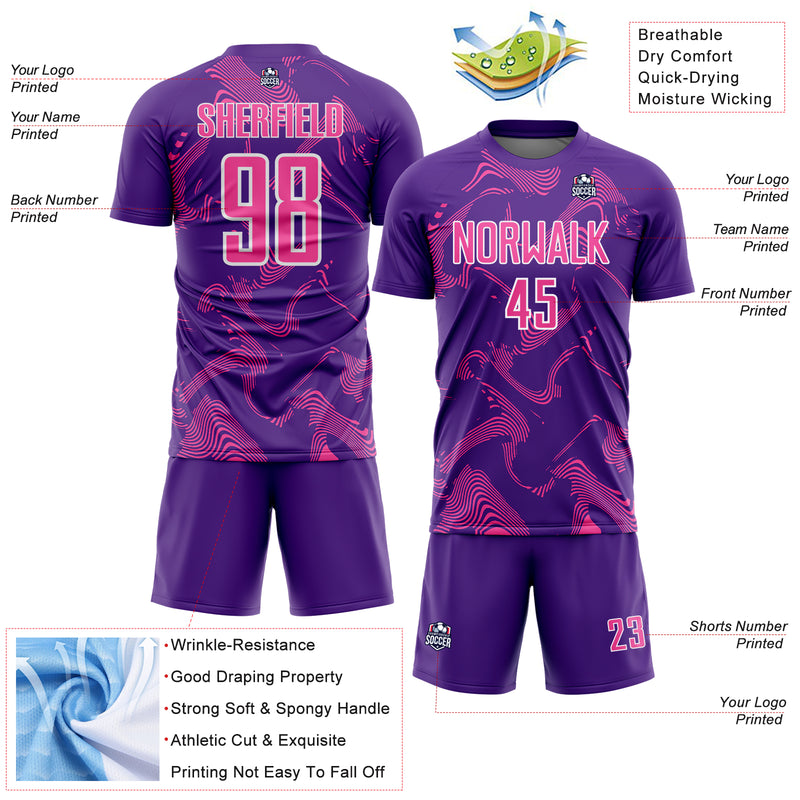 Custom Purple Pink-White Curve Lines Sports Sublimation Soccer Uniform Jersey