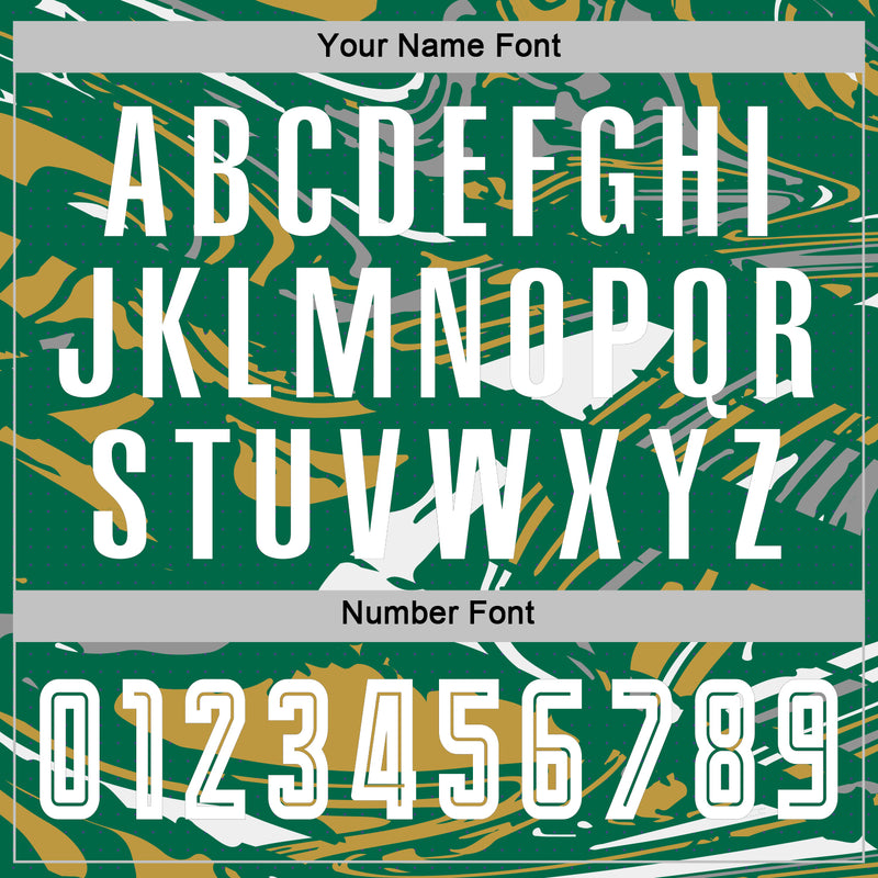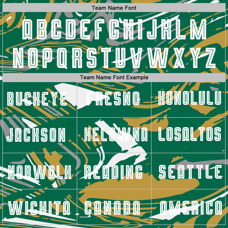 Custom Figure White Kelly Green-Old Gold Fluid Art Splash Sublimation Soccer Uniform Jersey