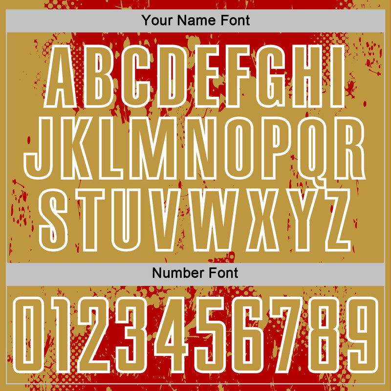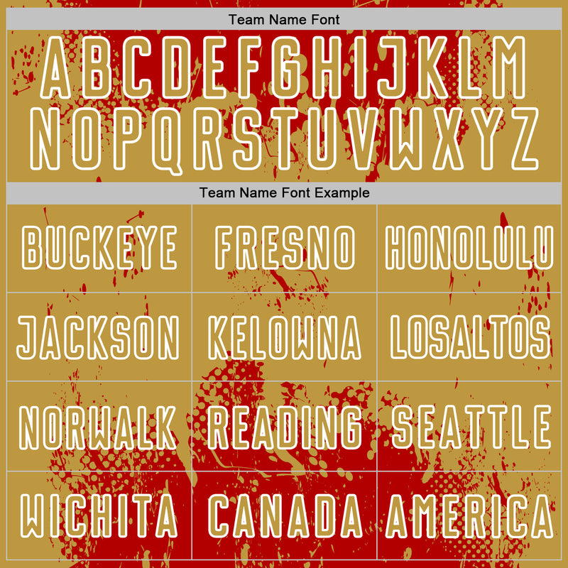 Custom Red Old Gold-White Abstract Splatter Grunge Art Sports Sublimation Soccer Uniform Jersey