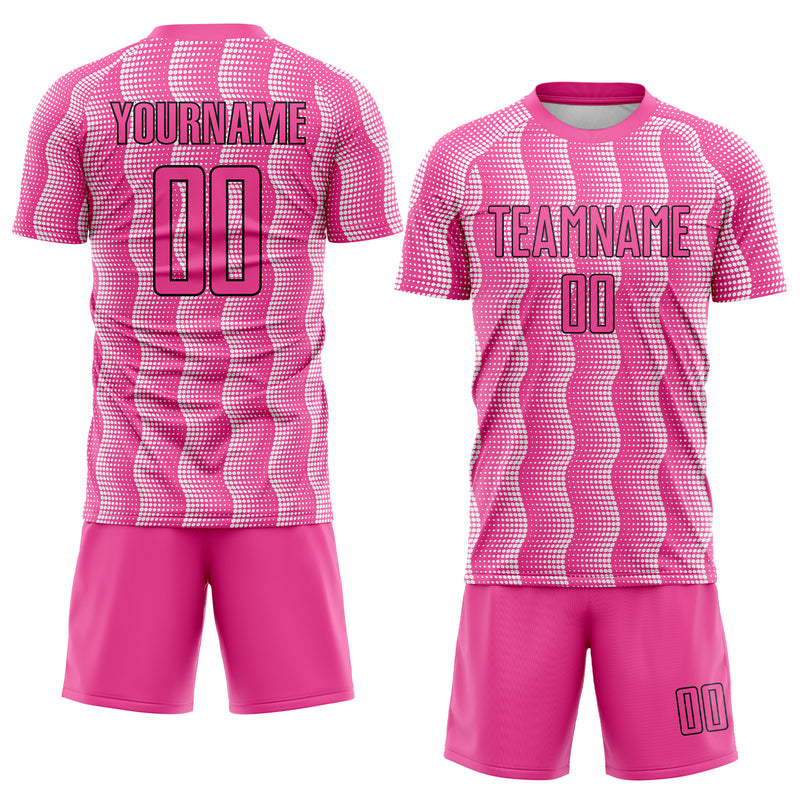 Custom Pink Black-White Geometric Shape Sublimation Soccer Uniform Jersey
