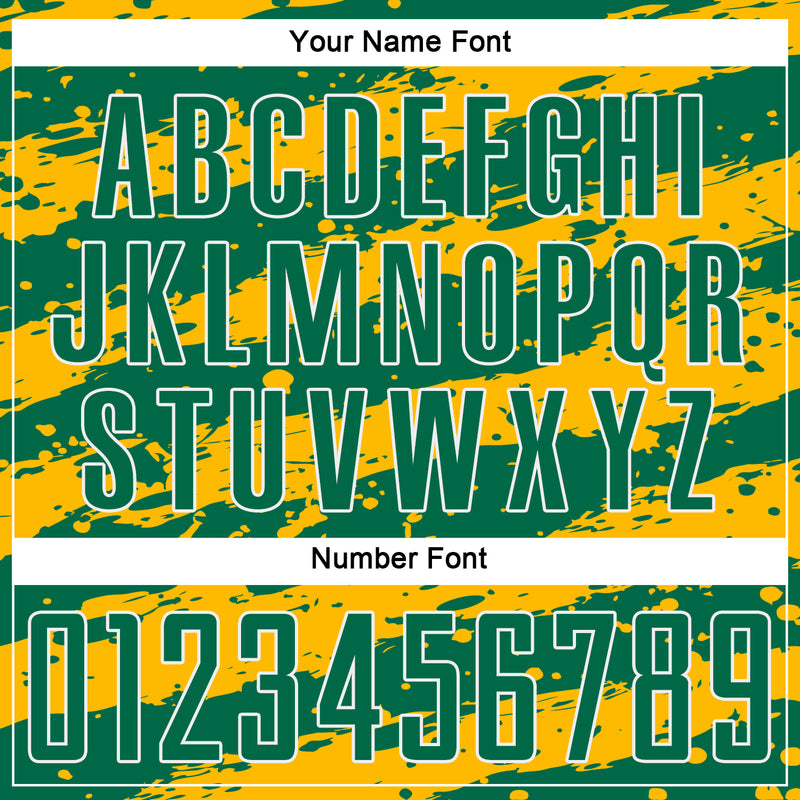 Custom Kelly Green Gold-White Splash Sublimation Soccer Uniform Jersey