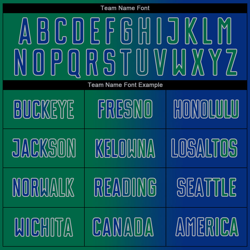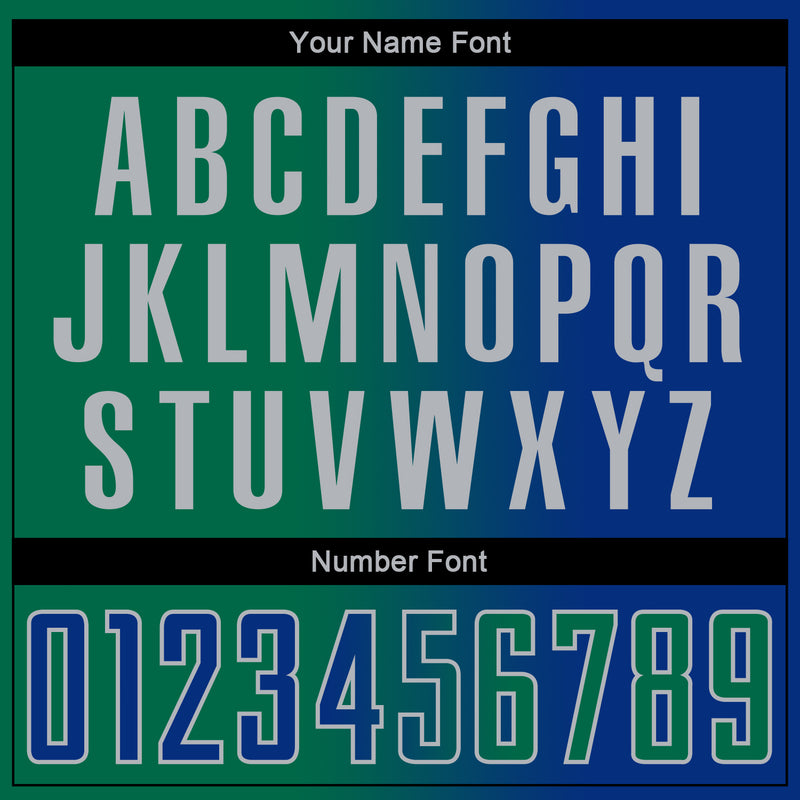 Custom Royal Kelly Green-Gray Sublimation Gradient Fashion Soccer Uniform Jersey