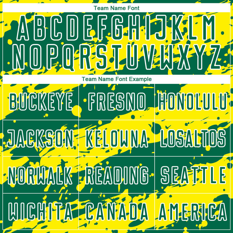 Custom Kelly Green Light Yellow-White Splash Sublimation Soccer Uniform Jersey