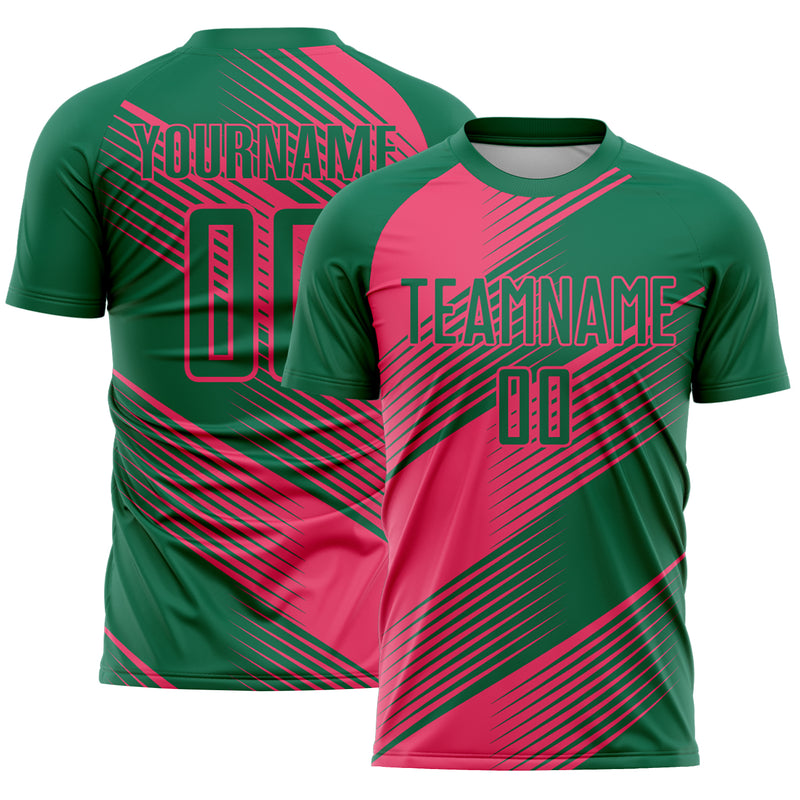 Custom Kelly Green Neon Pink Line Sublimation Soccer Uniform Jersey
