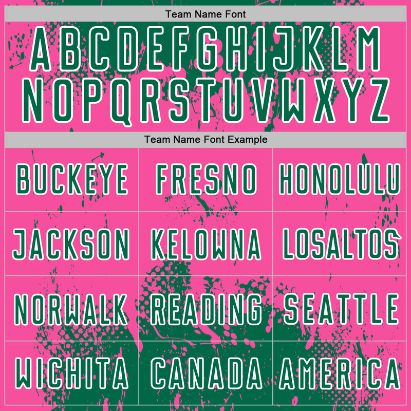 Custom Kelly Green Pink-White Abstract Splatter Grunge Art Sports Sublimation Soccer Uniform Jersey