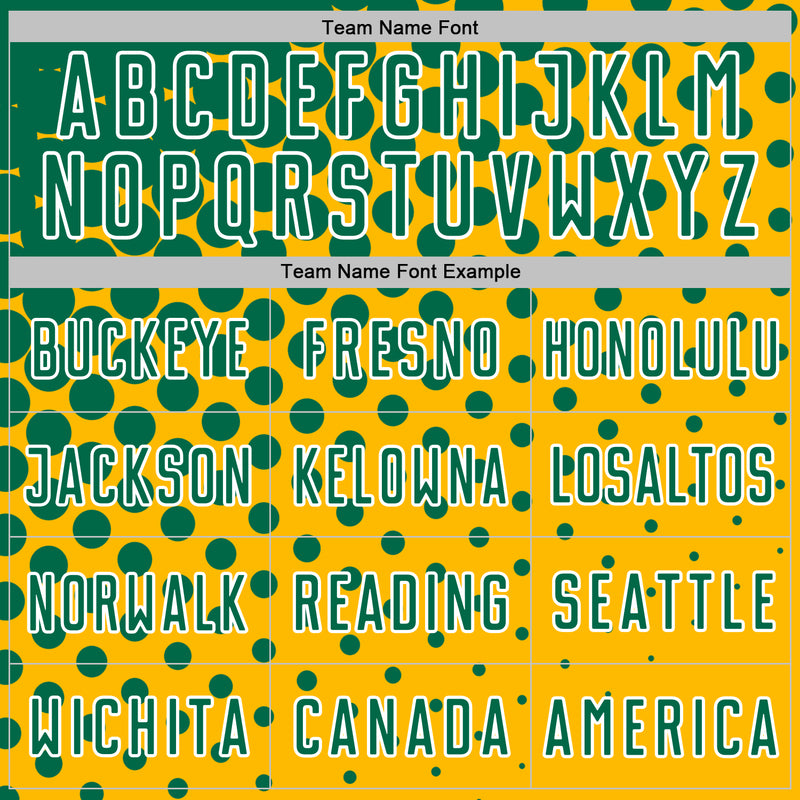 Custom Gold Kelly Green-White Modern Polka Dot Sublimation Soccer Uniform Jersey