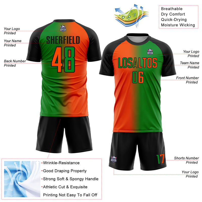 Custom Grass Green Orange-Black Sublimation Gradient Fashion Soccer Uniform Jersey