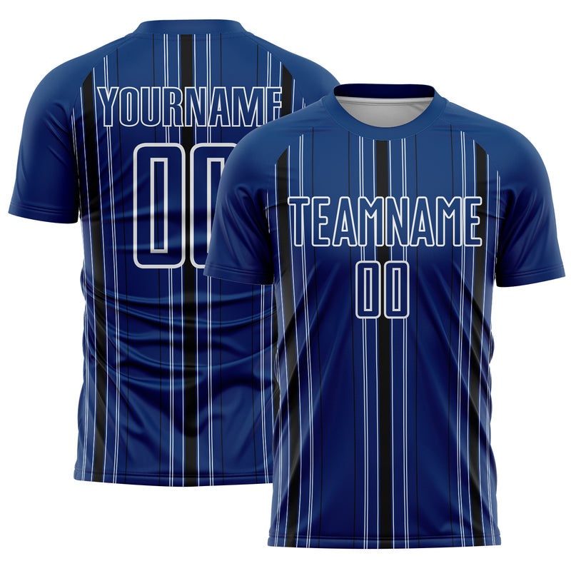 Custom Navy Black-White Stripe Sublimation Soccer Uniform Jersey