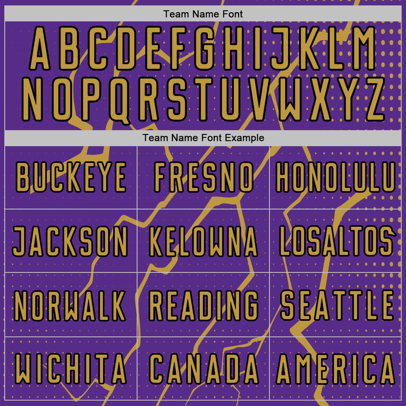 Custom Purple Old Gold-Black Lightning Sports Sublimation Soccer Uniform Jersey