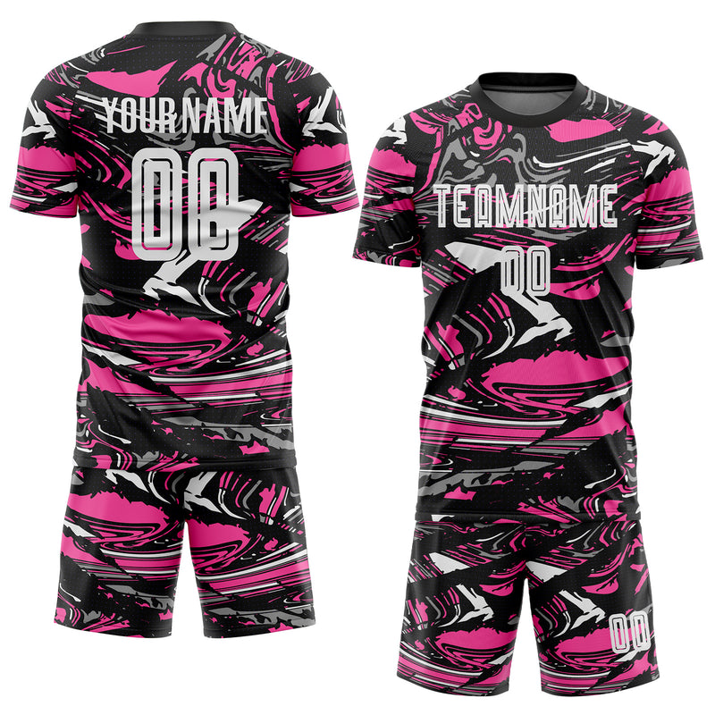 Custom Figure White Black-Pink Fluid Art Splash Sublimation Soccer Uniform Jersey