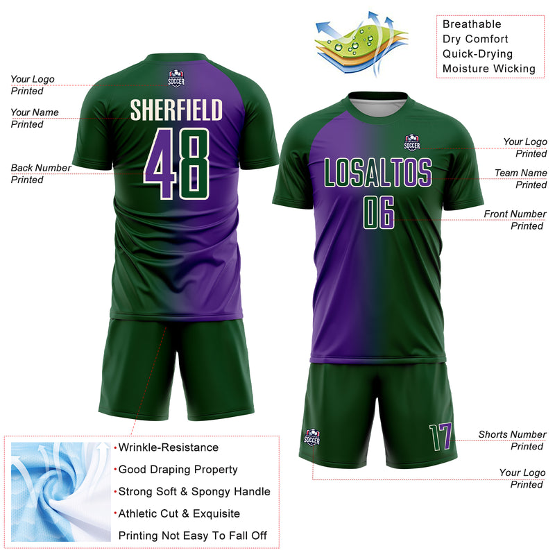 Custom Green Purple-Cream Sublimation Gradient Fashion Soccer Uniform Jersey