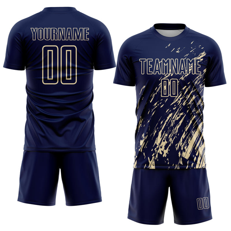 Custom Navy Cream Splash Sublimation Soccer Uniform Jersey