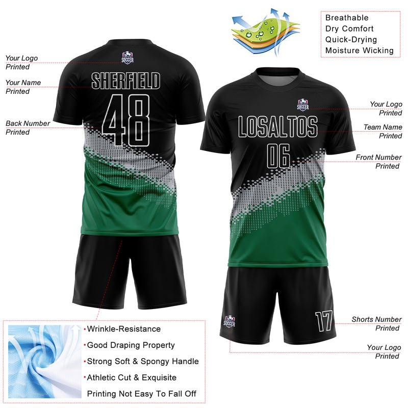 Custom Black Gray-Kelly Green Gradient Geometric Shape Sublimation Soccer Uniform Jersey