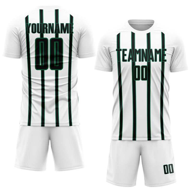 Custom White Black-Kelly Green Stripe Line Sublimation Soccer Uniform Jersey
