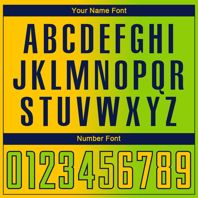 Custom Neon Green Yellow-Navy Sublimation Gradient Fashion Soccer Uniform Jersey