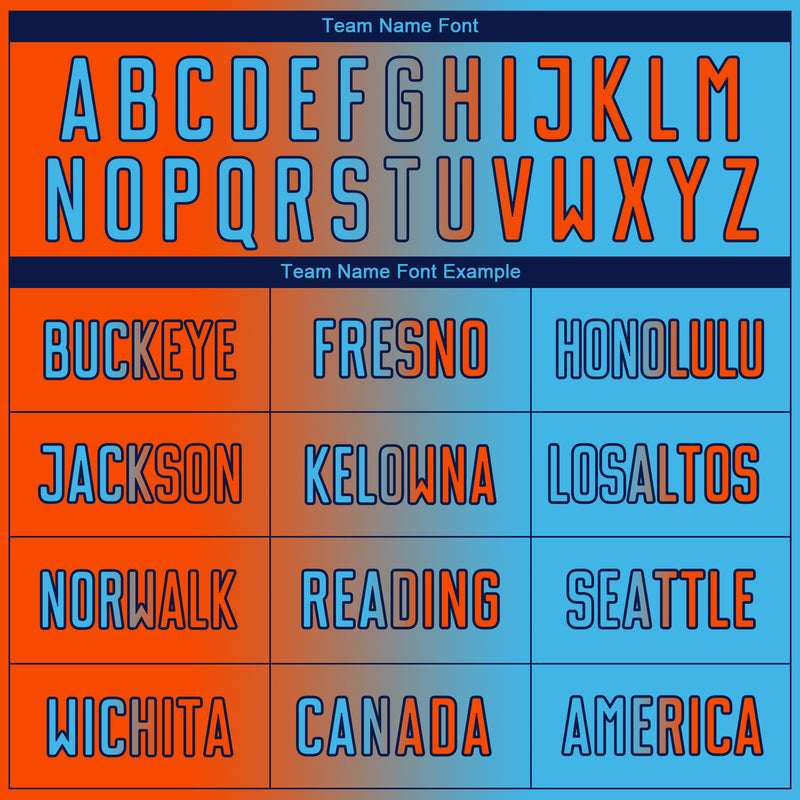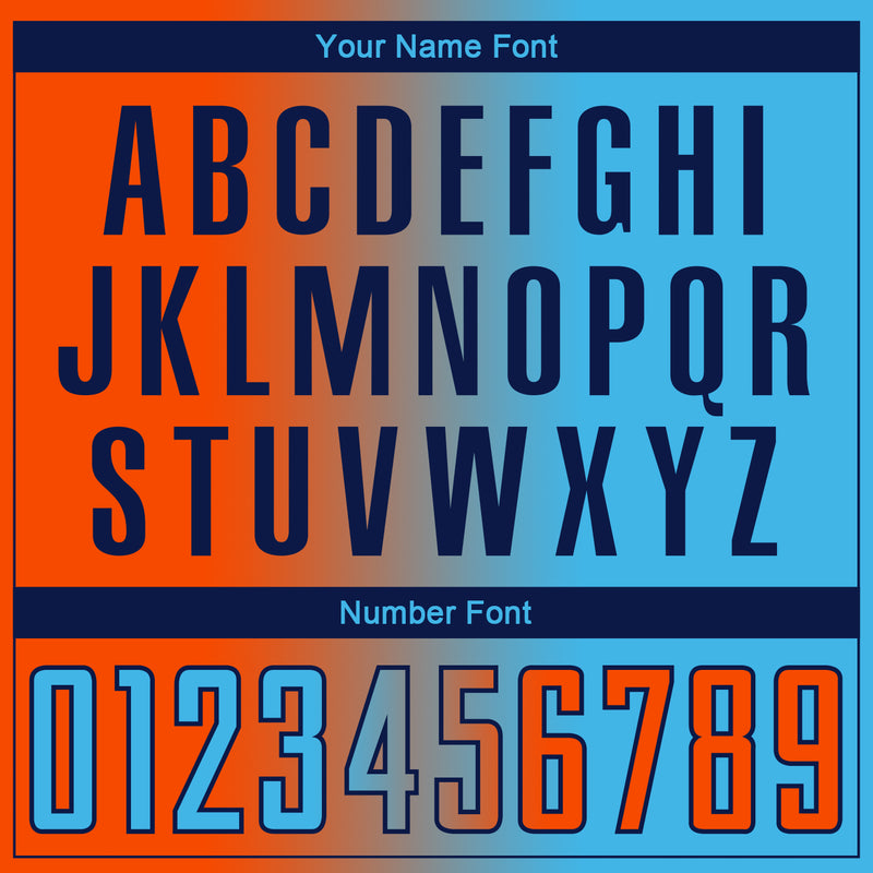 Custom Sky Blue Orange-Navy Sublimation Gradient Fashion Soccer Uniform Jersey