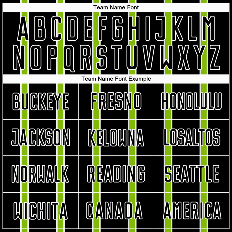 Custom Black Neon Green-White Stripe Line Sublimation Soccer Uniform Jersey
