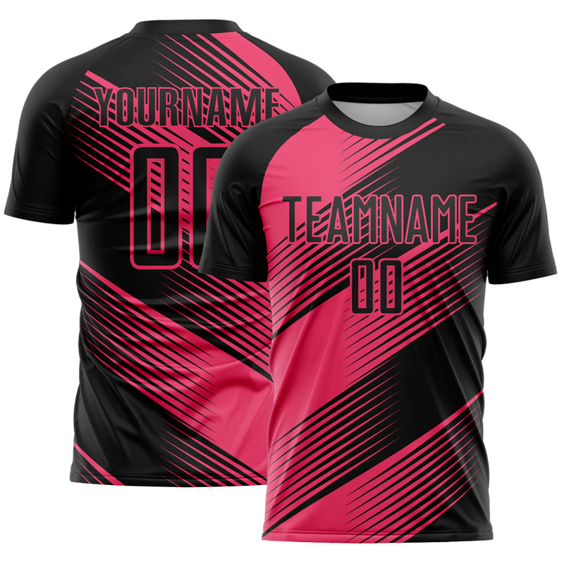 Custom Black Neon Pink Line Sublimation Soccer Uniform Jersey