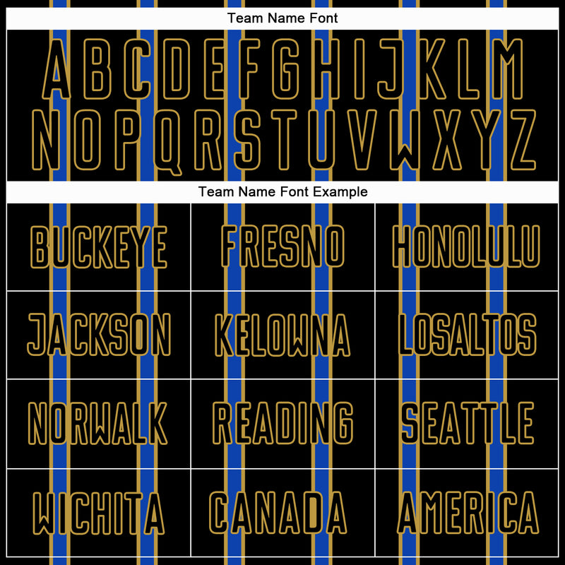 Custom Black Thunder Blue-Old Gold Stripe Line Sublimation Soccer Uniform Jersey