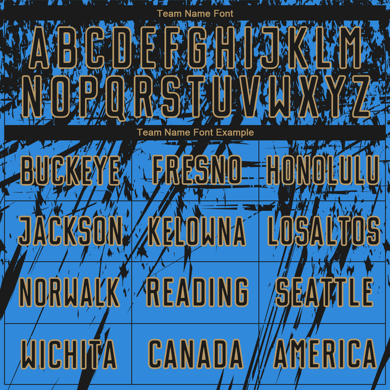 Custom Powder Blue Black-Old Gold Sublimation Soccer Uniform Jersey