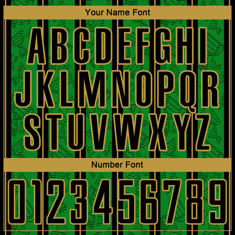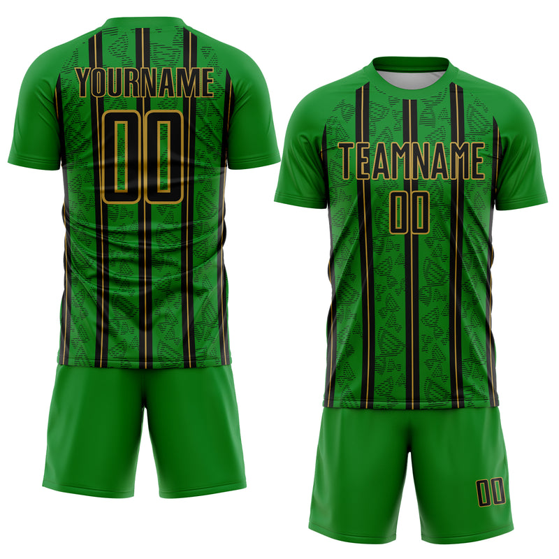Custom Grass Green Black-Old Gold Stripe Line Sublimation Soccer Uniform Jersey