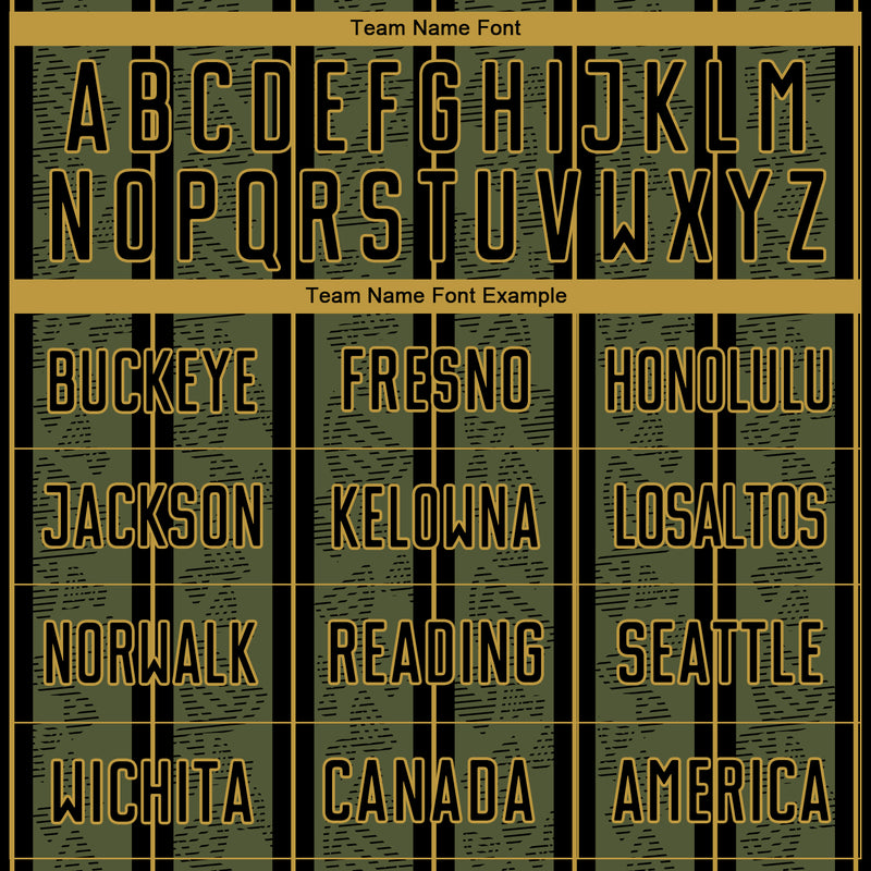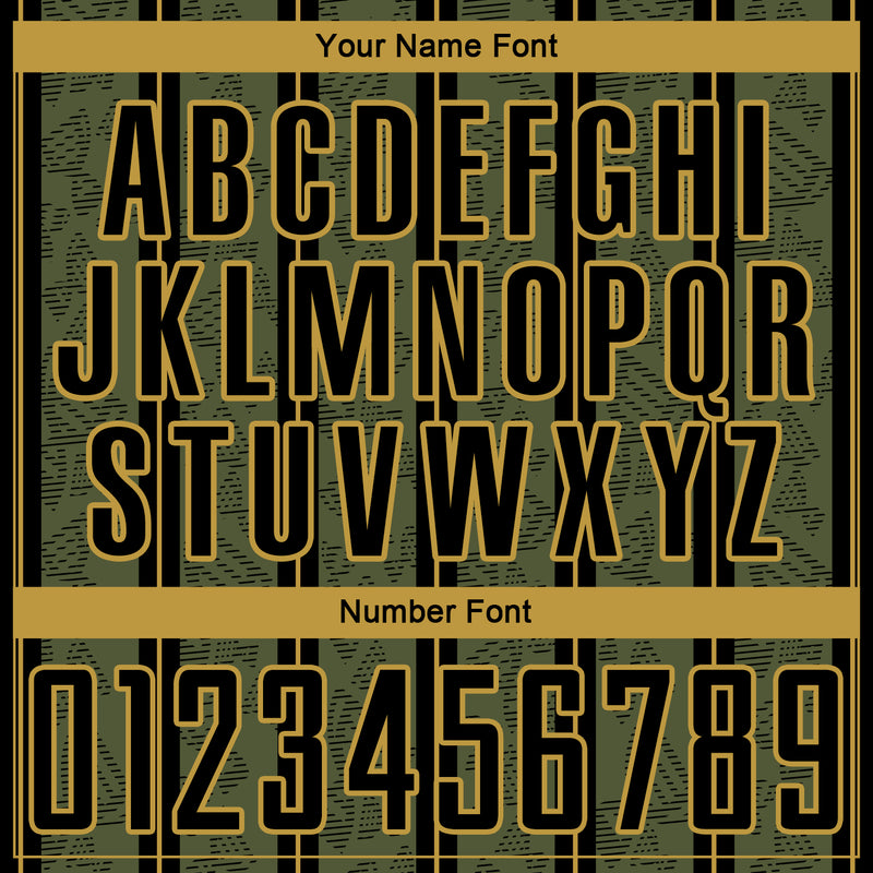Custom Olive Black-Old Gold Stripe Line Sublimation Salute To Service Soccer Uniform Jersey