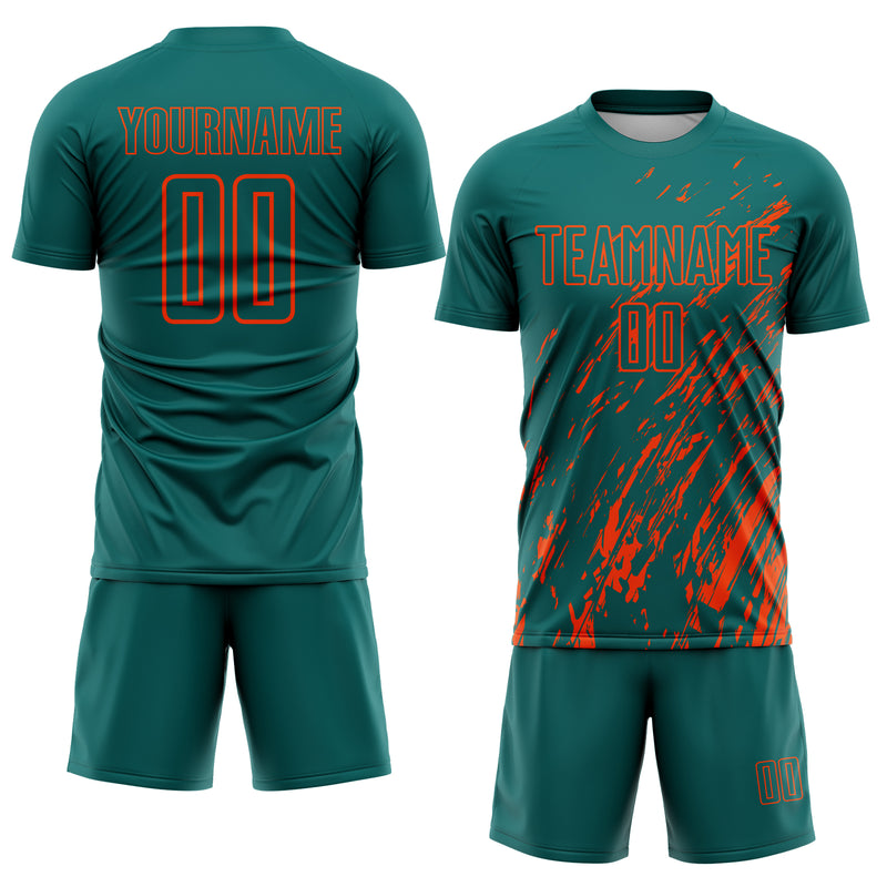 Custom Teal Orange Splash Sublimation Soccer Uniform Jersey
