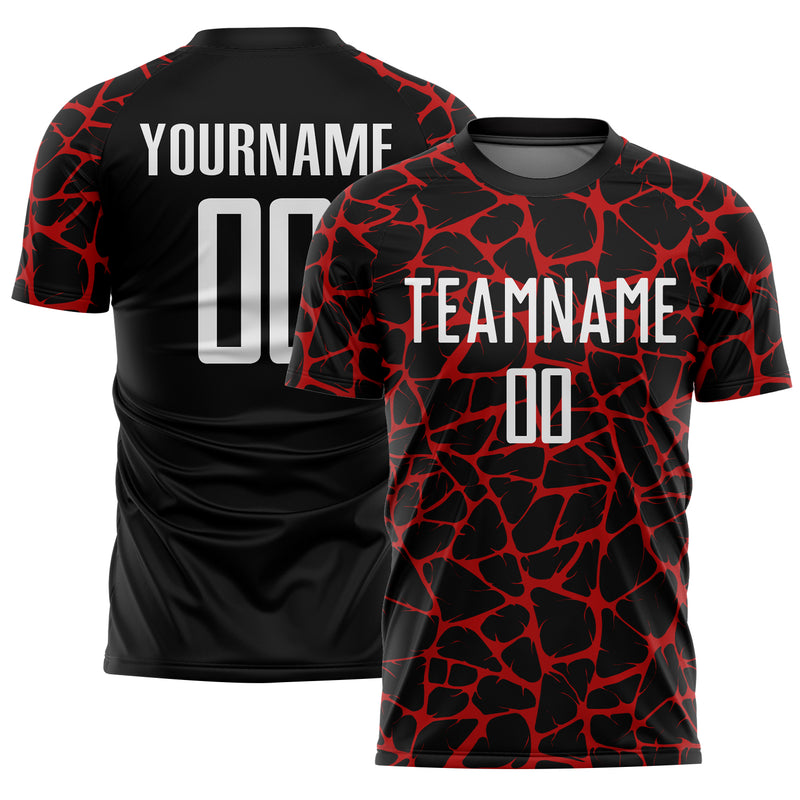 Custom Black White-Red Abstract Network Splash Sublimation Soccer Uniform Jersey