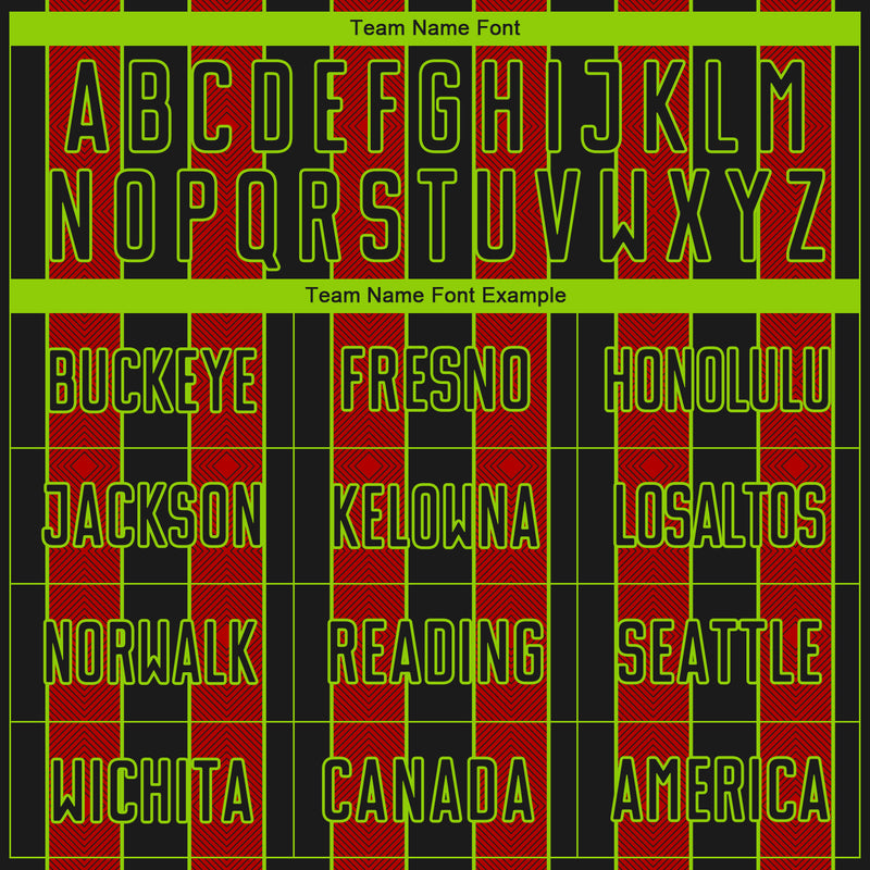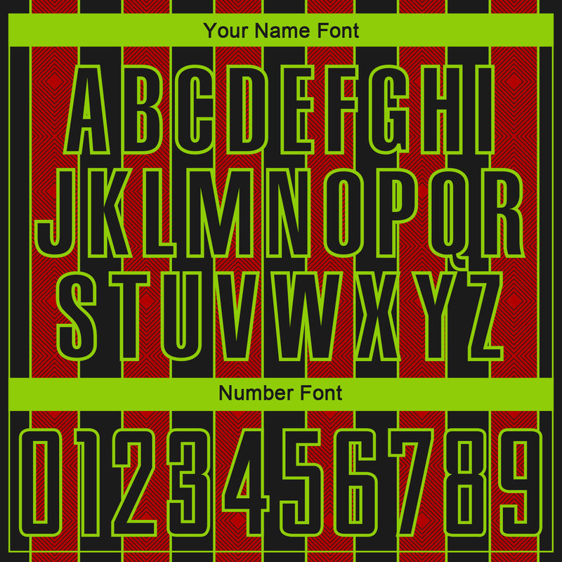 Custom Black Red-Neon Green Pinstripe Line Sports Sublimation Soccer Uniform Jersey