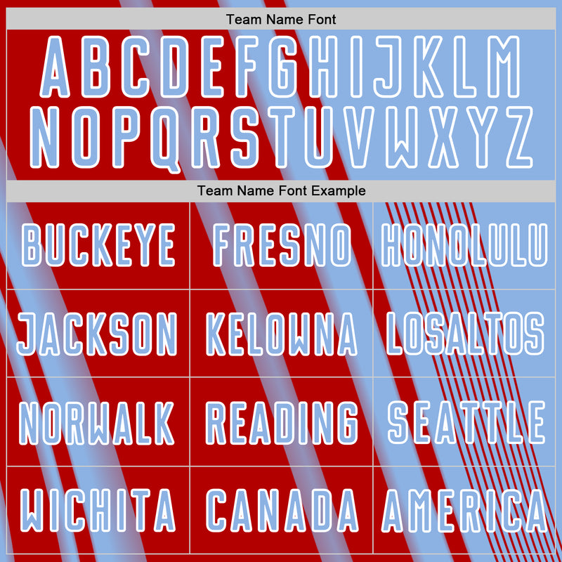 Custom Light Blue Red-White Lines Sports Sublimation Soccer Uniform Jersey