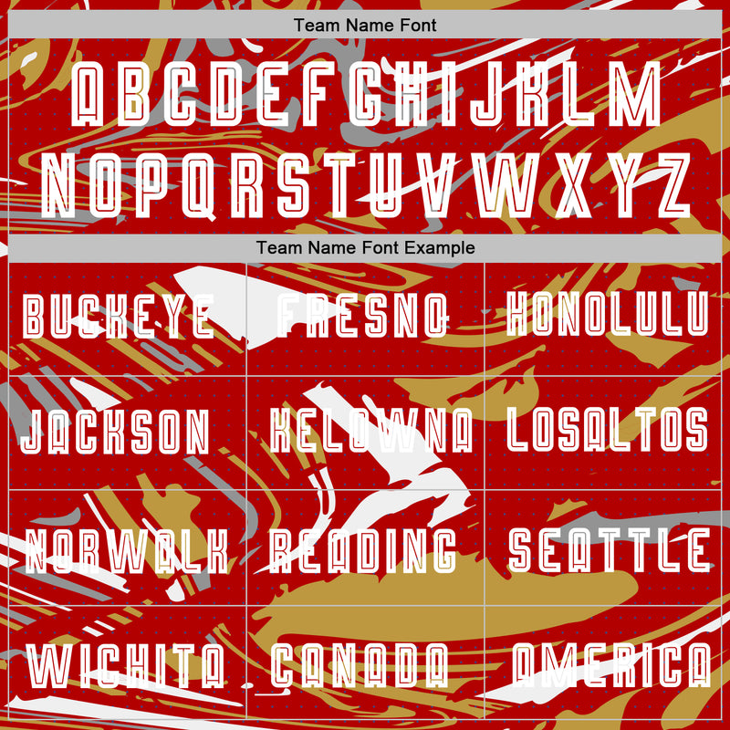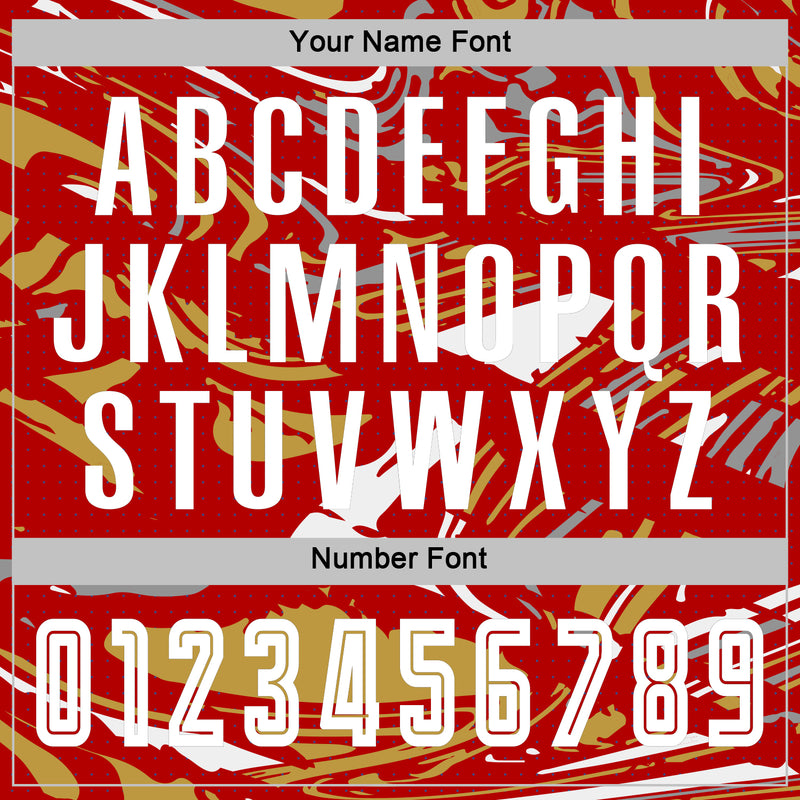 Custom Figure White Red-Old Gold Fluid Art Splash Sublimation Soccer Uniform Jersey