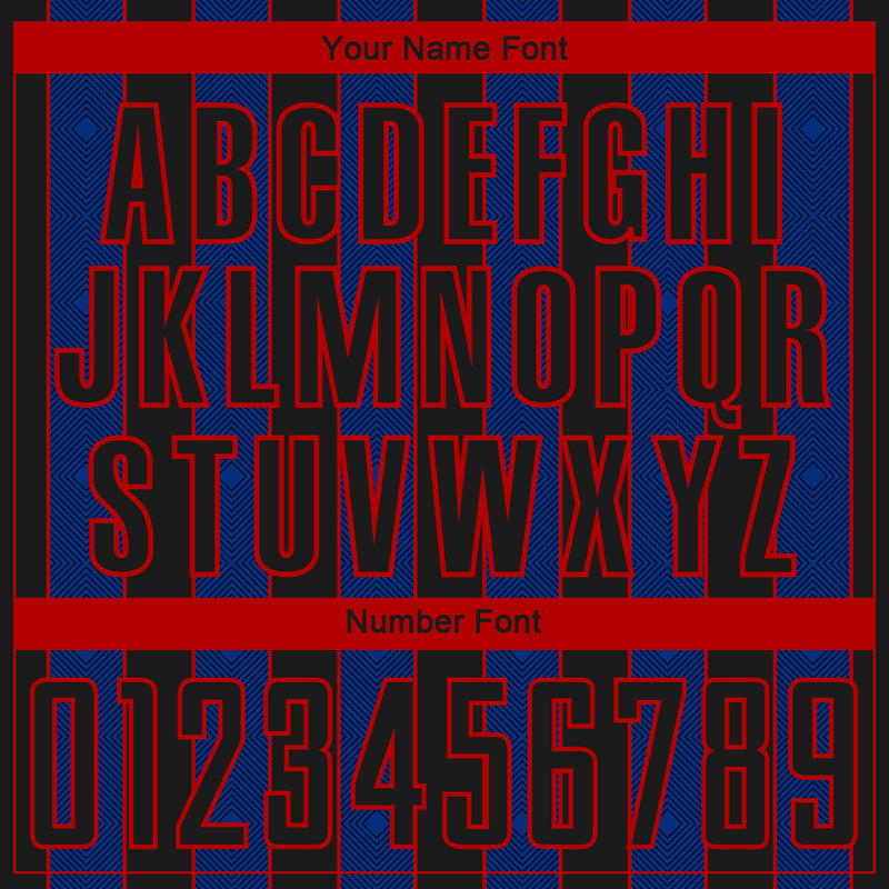 Custom Black Royal-Red Pinstripe Line Sports Sublimation Soccer Uniform Jersey