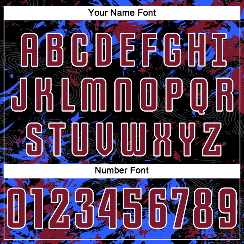 Custom Black Crimson Royal-White Fluid Art Splash Sublimation Soccer Uniform Jersey