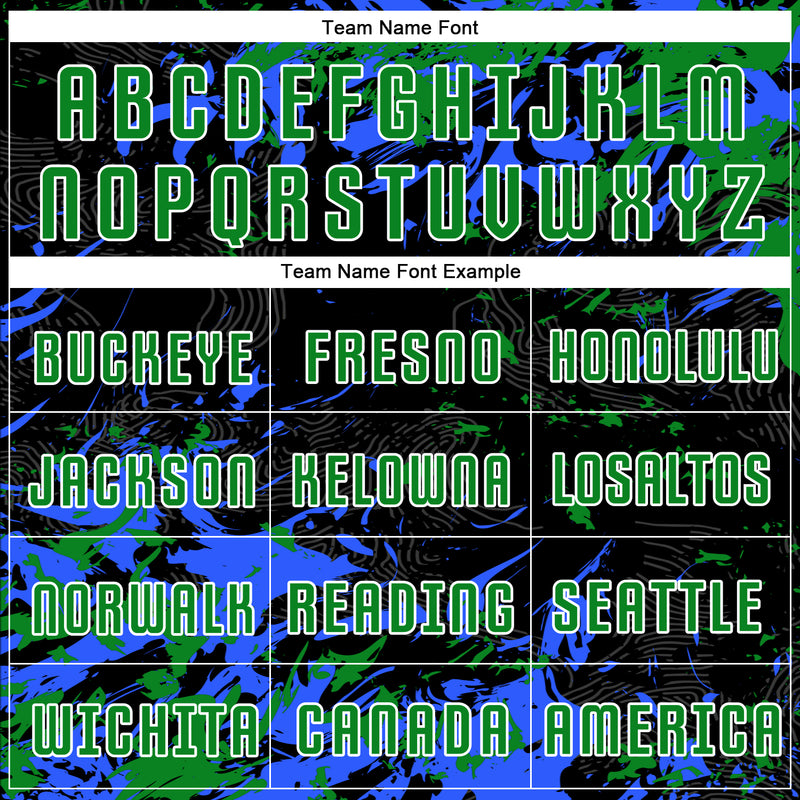 Custom Black Grass Green Royal-White Fluid Art Splash Sublimation Soccer Uniform Jersey