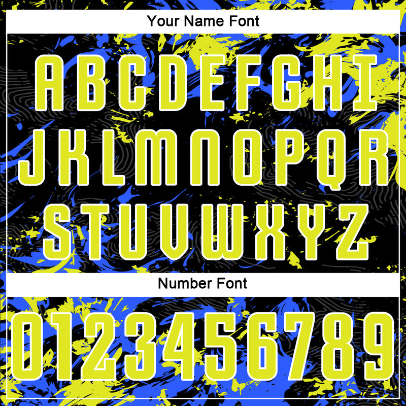 Custom Black Neon Yellow Royal-White Fluid Art Splash Sublimation Soccer Uniform Jersey