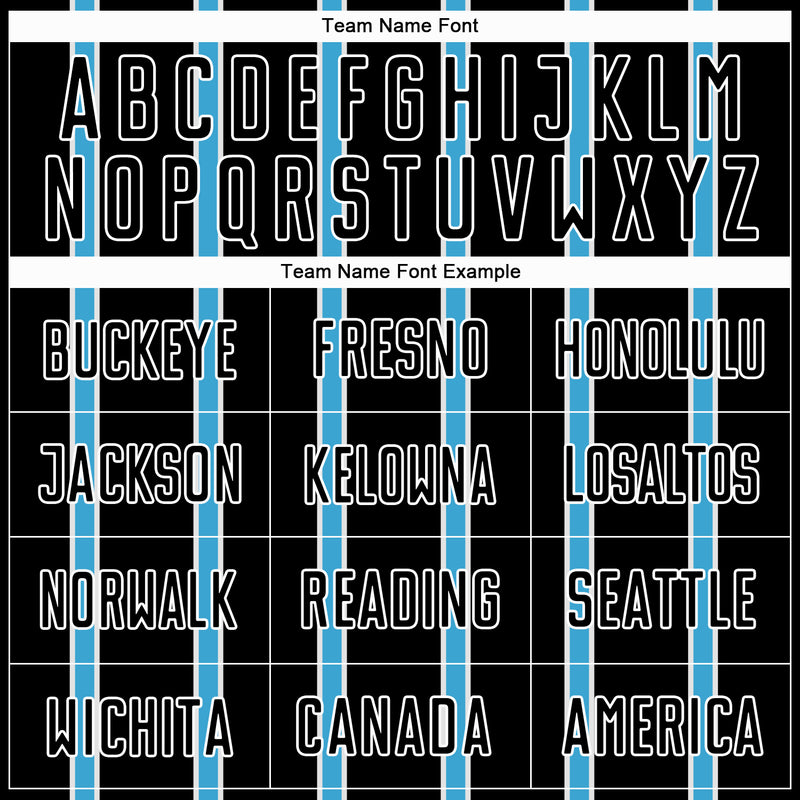 Custom Black Sky Blue-White Stripe Line Sublimation Soccer Uniform Jersey