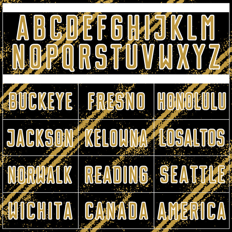 Custom Black Old Gold-White Abstract Fragment Art Splash Sublimation Soccer Uniform Jersey
