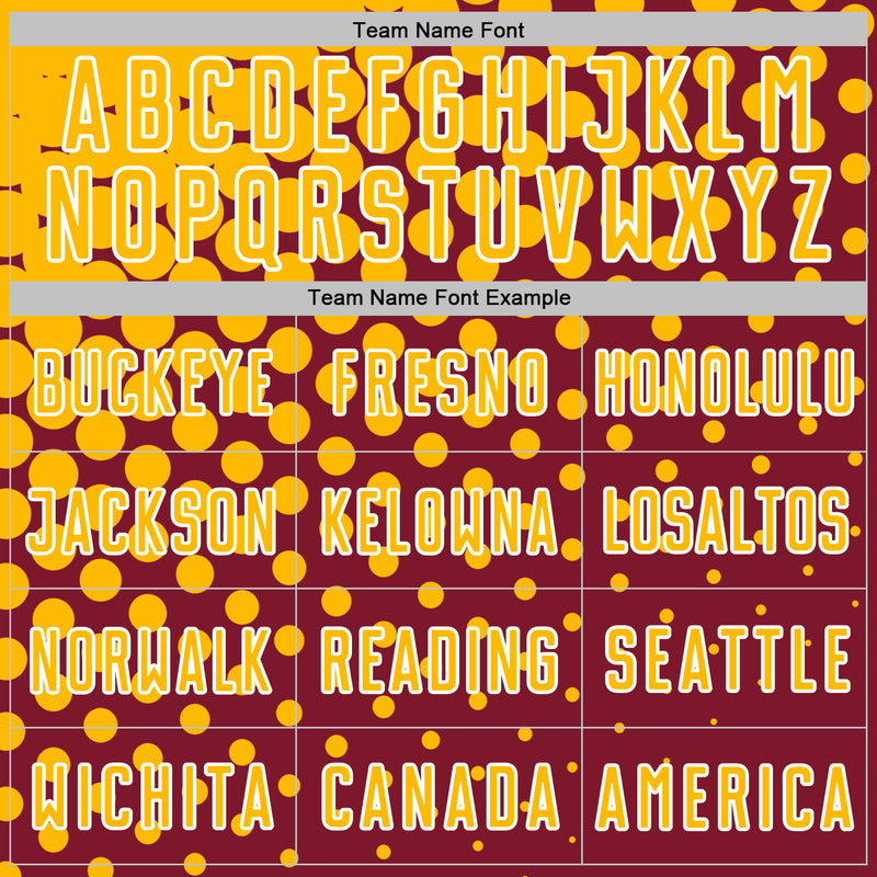 Custom Crimson Gold-White Modern Polka Dot Sublimation Soccer Uniform Jersey