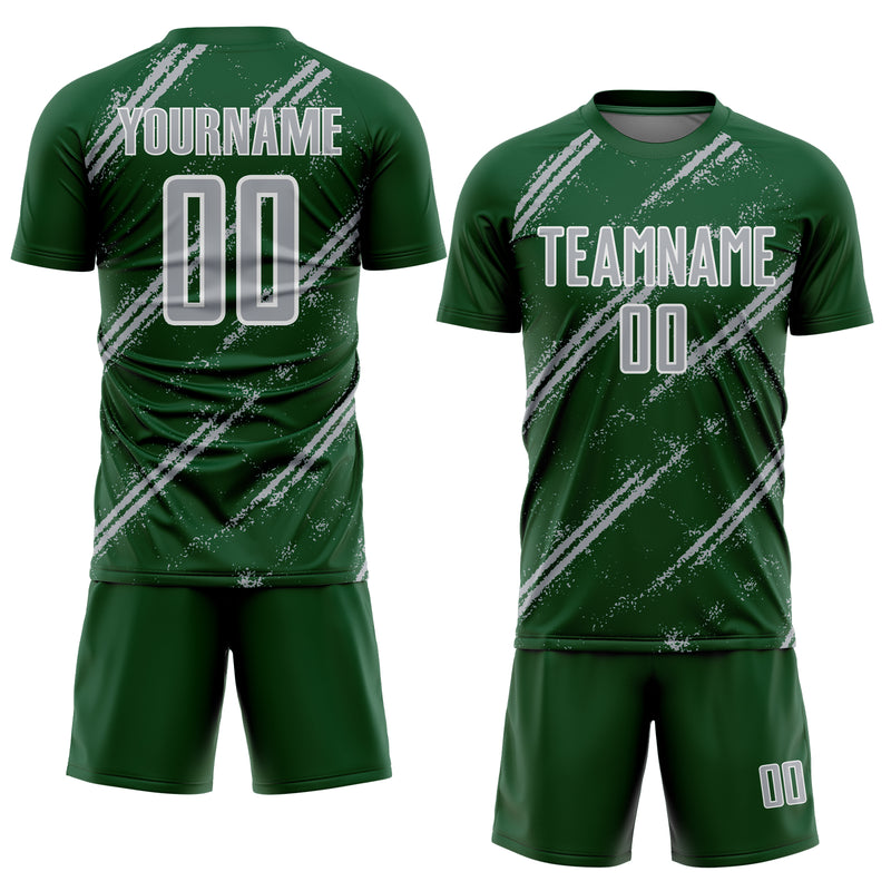 Custom Green Gray-White Abstract Fragment Art Splash Sublimation Soccer Uniform Jersey